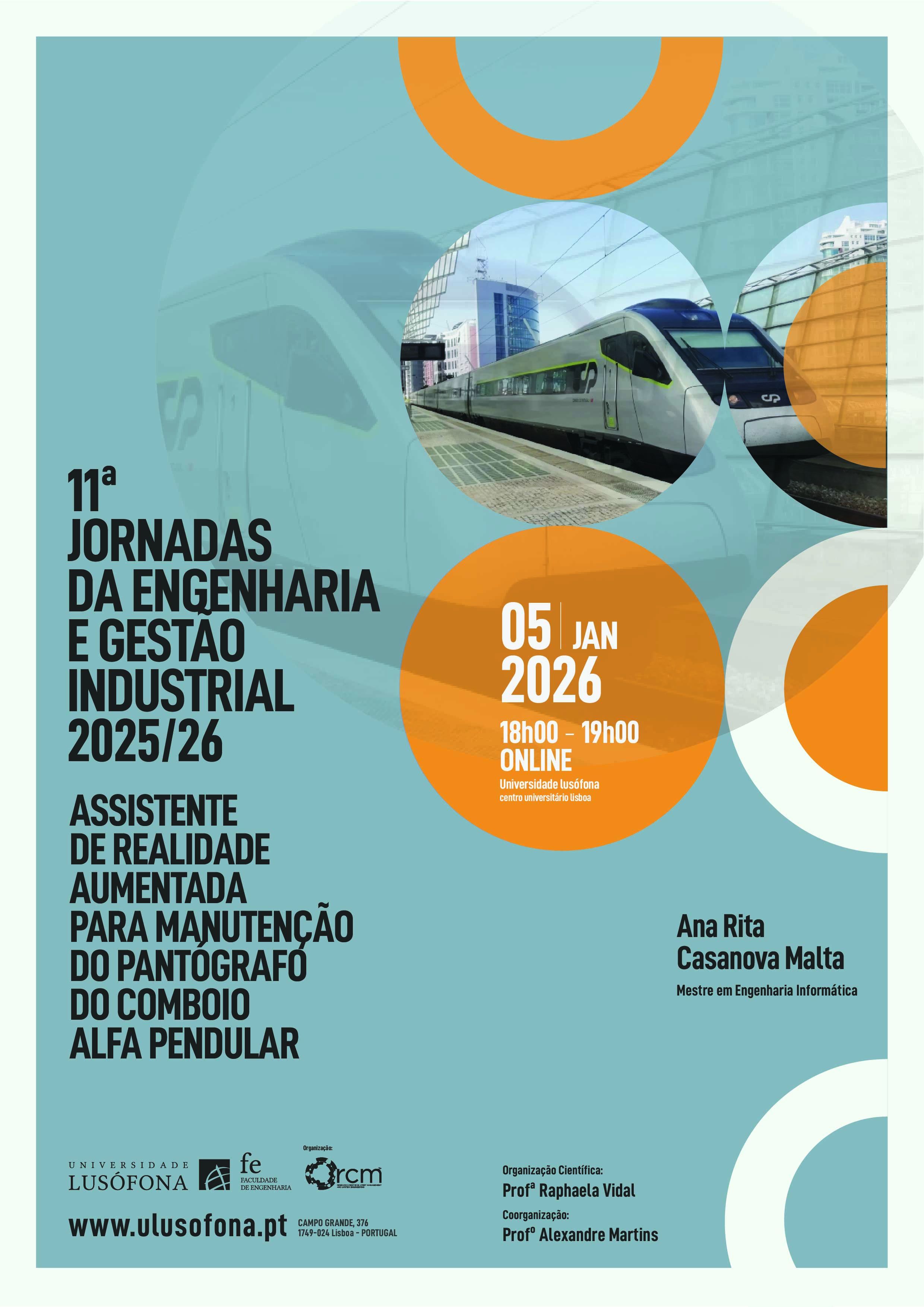 A apresentação aborda a integração de Realidade Aumentada (RA), Inteligência Artificial (IA), modelos BIM 3D e sistemas de gestão de manutenção (CMMS – Odoo) no contexto da manutenção ferroviária. Serão exploradas soluções que permitem suportar diagnósticos e intervenções assistidas através de modelos BIM, bem como o uso de óculos de RA para visualização de componentes em contexto real. A abordagem demonstra como estas tecnologias reduzem erros, melhoram a segurança operacional e apoiam os técnicos durante as atividades de inspeção e manutenção, com foco no caso do pantógrafo do comboio Alfa Pendular.